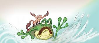 A scorpion once wanted to cross the river. Unable to swim, he asked a frog to carry him